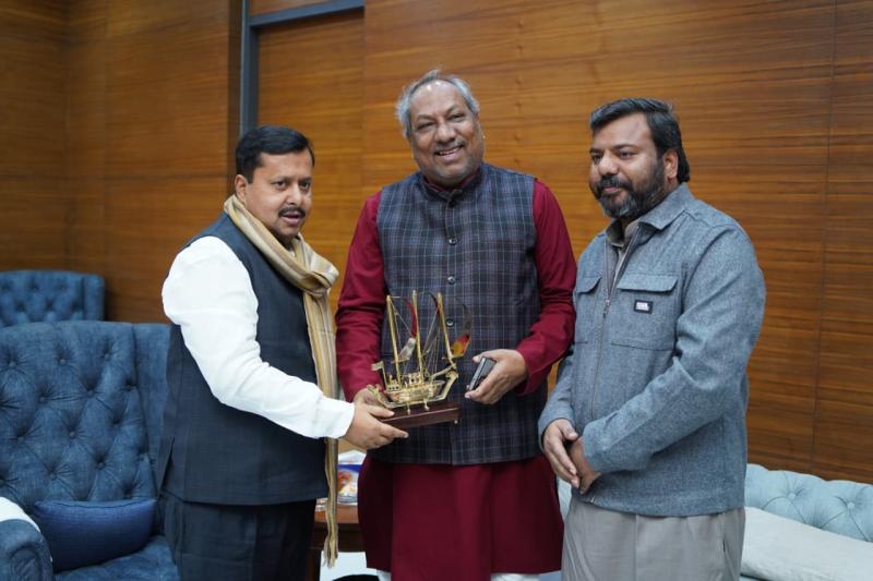 राष्ट्रीय अध्यक्ष निषाद पार्टी एवं कैबिनेट मंत्री, उत्तर प्रदेश सरकार डॉ. संजय कुमार निषाद ने नई दिल्ली स्थित भारतीय जनता पार्टी मुख्यालय में भाजपा के राष्ट्रीय कार्यकारी अध्यक्ष एवं कैबिनेट मंत्री, बिहार सरकार नितिन नवीन से शिष्टाचार भेंट की।इस औपचारिक मुलाक़ात के दौरान डॉ. निषाद ने निषाद समाज के गौरव और पहचान का प्रतीक ‘नाव’ नवीन को भेंटस्वरूप प्रदान किया।
