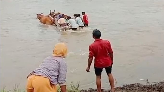 बैतूल में उफनती नदी बनी चुनौती, गर्भवती महिला को बैलगाड़ी से पार कराया गया