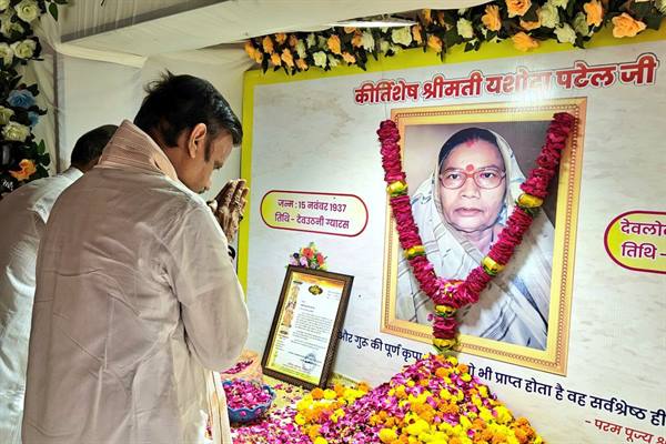 उप मुख्यमंत्री शुक्ल ने मंत्री पटेल की माताजी स्वर्गीय पटेल को अर्पित की श्रद्धांजलि