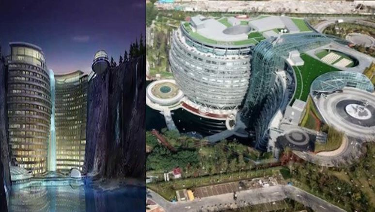 इस होटल को डिजाइन करने के लिए कई मशहूर आर्किटेक्चर फर्म्स को चुना गया। होटल की डिजाइन में फेंगशुई के प्रिंसिपल्स को अपनाया गया है और इसे 'इनवर्टेड ग्राउंडस्क्रेपर' कहा जाता है, क्योंकि यह ऊपर की बजाय नीचे की ओर बना है।