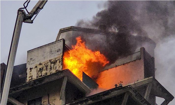 चार मंजिला इमारत बनी आग का गोला, दमकल कर्मियों ने कई घंटों तक किया संघर्ष