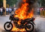 जिला न्यायालय के पास चलती बाइक बनी आग का गोला, मचा हड़कंप -