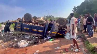उडुपी (कर्नाटक): उडुपी जिले में रविवार को मजदूरों और सजावट का सामान ले जा रहा एक वाहन राष्ट्रीय राजमार्ग-66 पर पलट गया, जिससे पांच मजदूरों की मौत हो गई और सात...