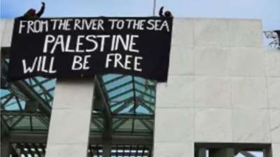 फलस्तीन समर्थक कार्यकर्ता ऑस्ट्रेलिया के संसद भवन की छत पर चढ़े