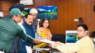केंद्रीय मंत्री जितेंद्र सिंह ने उधमपुर-कठुआ लोकसभा क्षेत्र से नामांकन पत्र दाखिल किया