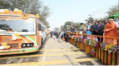 मुख्यमंत्री योगी ने प्रयागराज में 100 नई बसों को हरी झंडी दिखाकर रवाना किया
