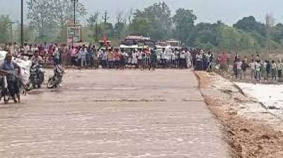 उफनाई नदी में बाइक समेत बह गए चाचा-भतीजा, तलाश जारी