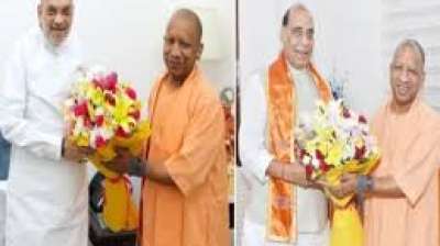 शपथ ग्रहण के बाद सीएम योगी ने की कई मंत्रियों से मुलाकात, दी बधाई